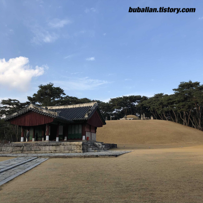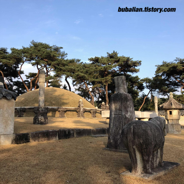 오백 원의 입장료를 내고 안으로 들어갔다. 조선왕릉이 유네스코 세계문화유산으로 지정된 후로 많은 정비를 한 것으로 보였는데, 잘 정리된 깔끔한 경관이 참 보기 좋았다. 들어서자마자 마스크를 뚫고 느껴지는 신선한 소나무 향이 기분을 참 좋게 해 준다.