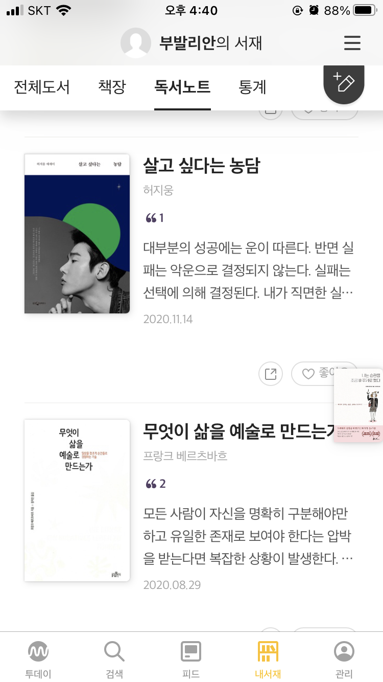 3. 독서노트와 통계를 이용할 수 있다. 기기 간 전환이 자연스럽다.